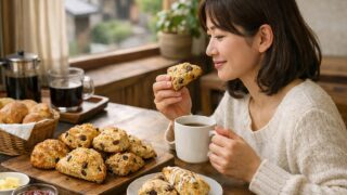 簡単スタバ風本格スコーンを、ホットケーキミックスでも薄力粉でも再現するコツを解説。冷やし方、混ぜ方、焼き方、失敗の直し方、冷凍と温め直しまでまとめました。