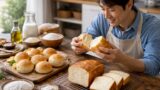 最後に、手作りに挑戦したい方へ向けた「こねないバケットレシピ」を紹介します。難しそうに見えますが、ポイントを押さえれば初心者でも成功しやすい方法です。強力粉・水・塩・イーストの4つだけで、香ばしく風味豊かなバケットが作れます。